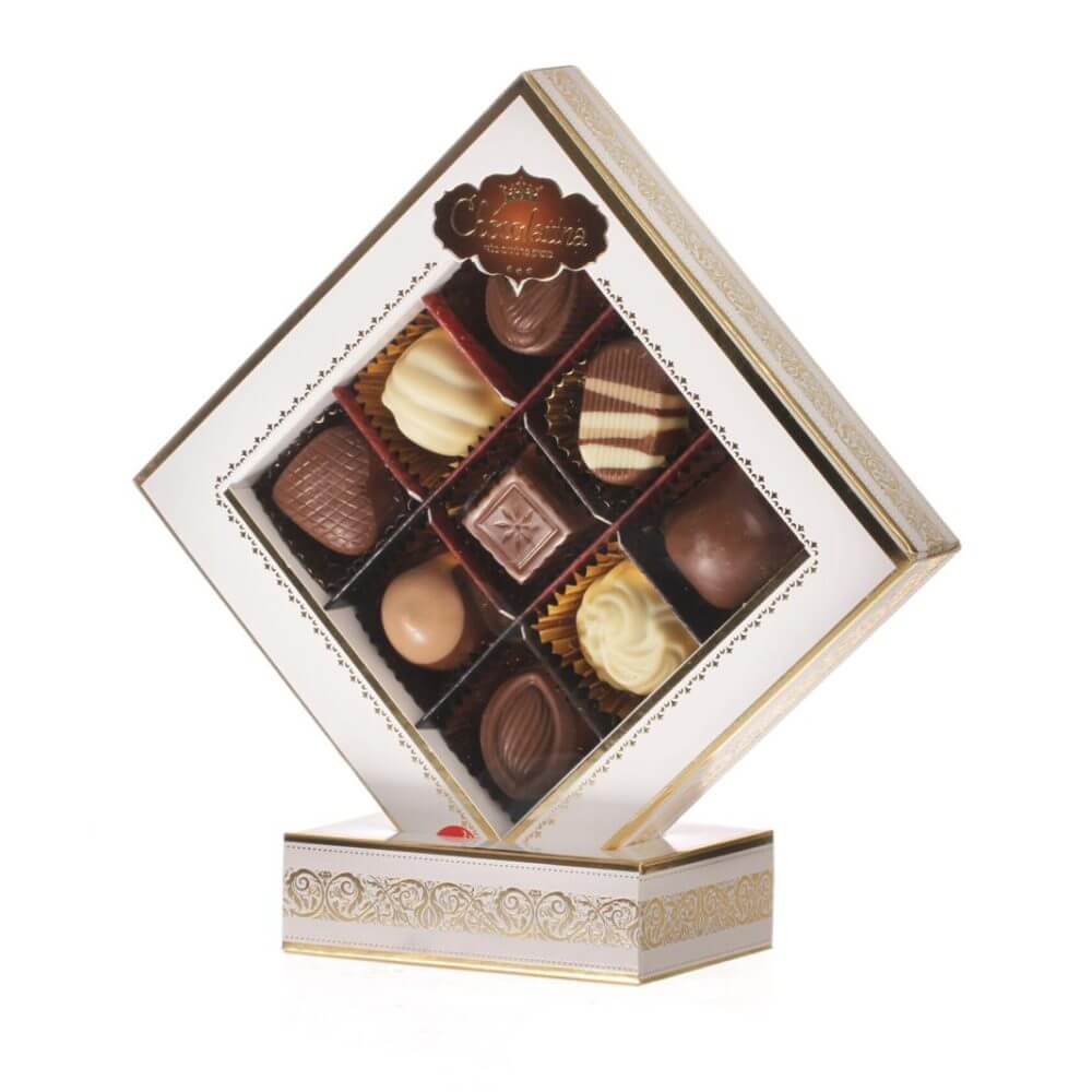 9 פרלינים במארז מפואר על סטנד