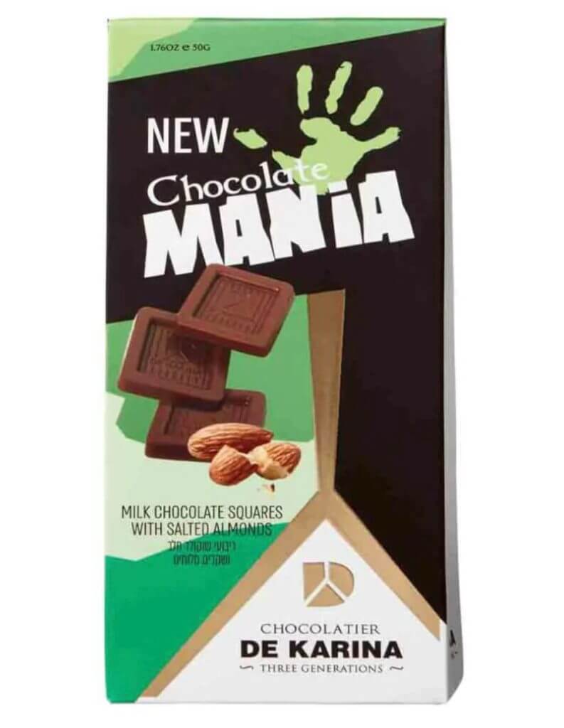ריבועי שוקולד חלב עם נגיסות שקדים קלויים ומלח ים